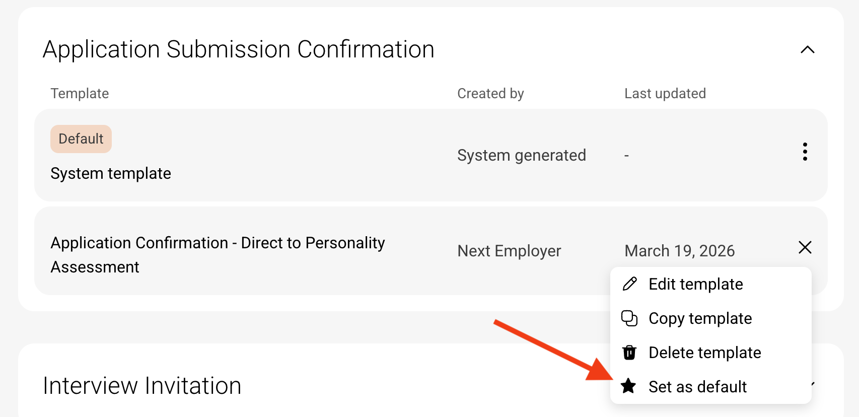 Set default templates for common hiring actions